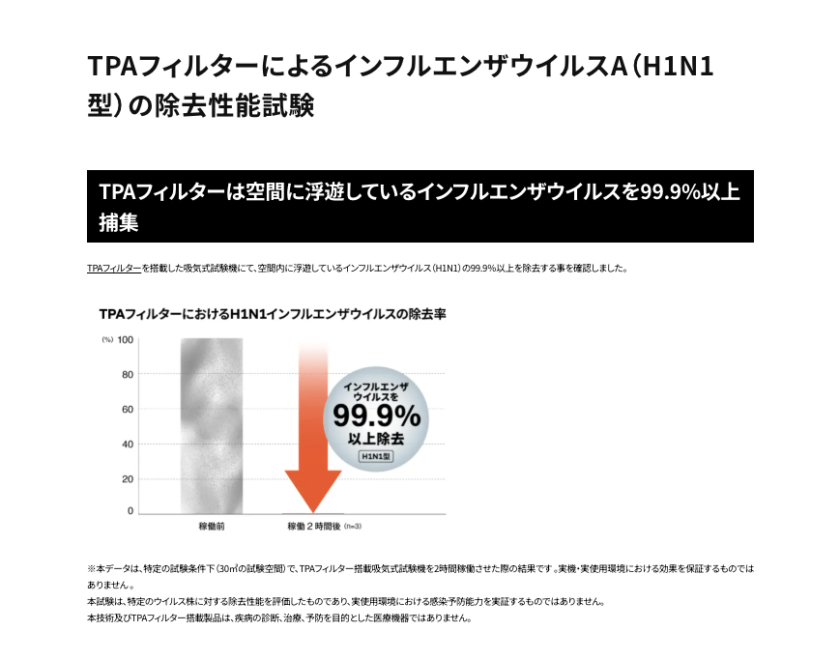 「TPAフィルター」はナノレベルの超微細粒子も99%以上除去