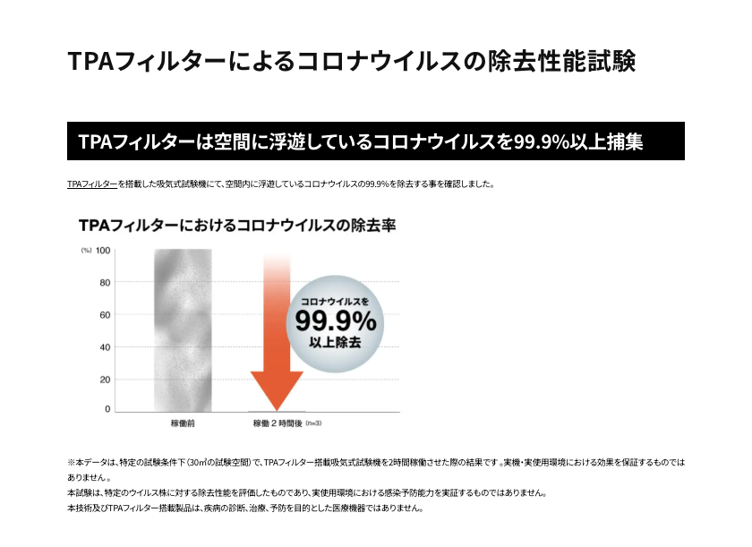 本技術及びTPAフィルター搭載製品は、疾病の診断、治療、予防を目的とした医療機器ではありません。
